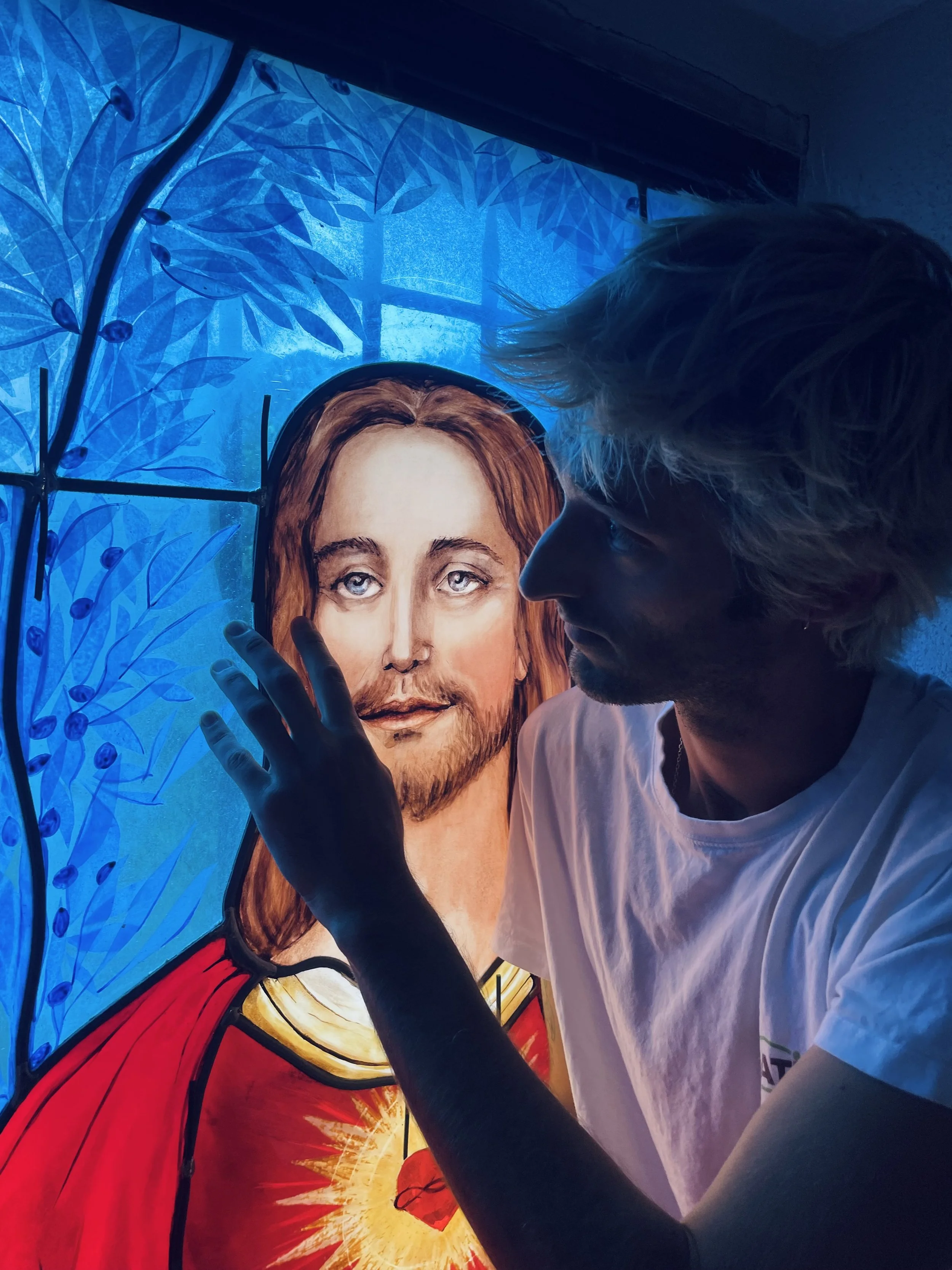 Les peintures sur verre des vitraux sont réalisés à l’atelier avant d’être sertis et posés en église (Corse)